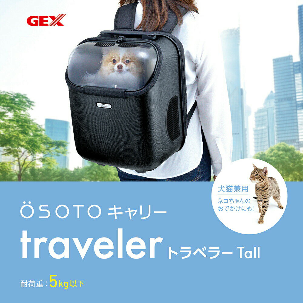 メーカー:ジェックス品番:57429衝撃に強く、軽くて安心なポリカーボネート製!GEX OSOTOキャリー トラベラー Tall ブラック対象犬・猫特長●コンパクトサイズの4WAYリュックです。
