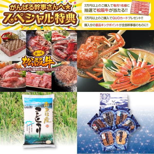 景品セット情報 販売価格 125,000円(送料・パネル代 全て込み) セット内容 景品7点/A3景品パネル7点/目録風お申し込み用紙 景品 お届け形態 数量 4K対応液晶テレビ43インチパネル&目録1選べる一品景品【松阪牛】パネル&目録1ずわいがに詰め合わせパネル&目録1南魚沼産コシヒカリ(白米) 5kgパネル&目録1おつまみ珍味9種 古伊万里浪慢パネル&目録1九州産黒豚3点セットパネル&目録1北海道森町名産 いか道産子めし6尾パネル&目録1 合計 7