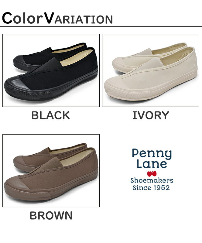 お得情報をメールマガジンにて無料配信中! ⇒登録はこちらブランド PENNY LANE ペニーレイン デザイン ローカット スリッポン ラウンドトゥ カラー BLACK ( ブラック ) 黒 IVORY ( アイボリー ) BROWN ( ブラウン ) 茶 サイズ展開(cm) S(約22.5cm) / M(約23.5cm) / L(約24.5cm) / LL(約25.0cm) 素材 アッパー:キャンバス ソール(底材):合成底 商品説明 『かわいくて履きやすい』がブランドコンセプト。