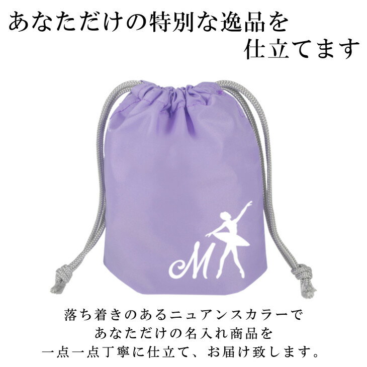 名入れ コップ袋 (巾着袋 / ナイロン / イニシャル / バレエ アラベスク )| ノーアイロン 子供用 巾着袋 コップ入れ 巾着 保育園 コップ 袋 女の子 男の子 小さめ 歯ブラシセット メイクポーチ かわいい 入学 入園 小学校 撥水 入学準備 幼稚園 入園準備