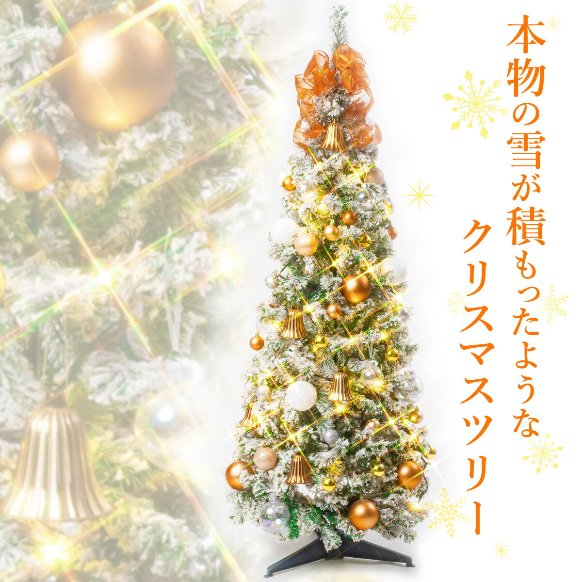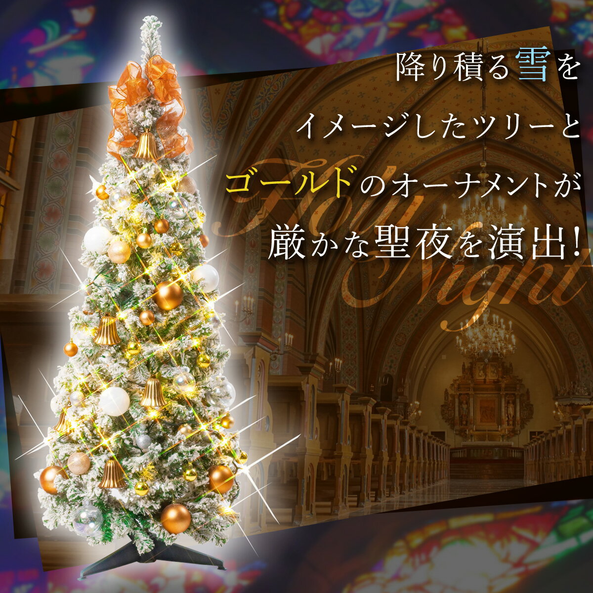 雪をイメージしたツリーにゴールドのオーナメントで厳かな聖夜を演出!トップのゴールドリボンもゴージャスで華やかな雰囲気をかもし出しています。