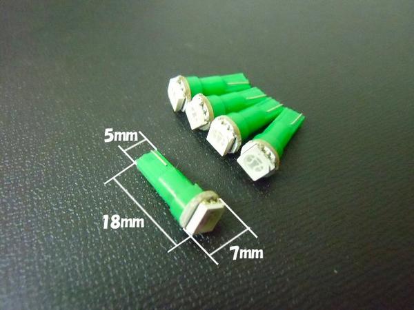 仕様・注意【24V車専用】【サイズ】全長18mm、最大幅7mm、差込口5mm 【型 式】T5/T6.5ウェッジ【 色 】グリーン【数 量】5個1セット※取付の際は自己責任にて行って下さい。